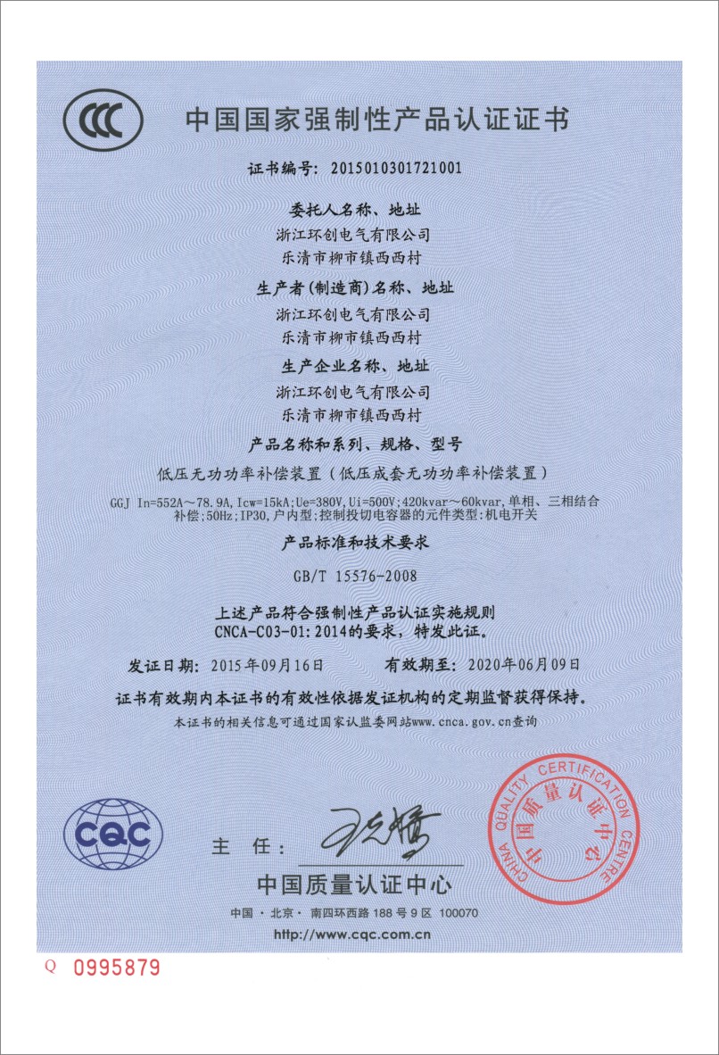 GGJ低壓無功補(bǔ)償裝置3C證書