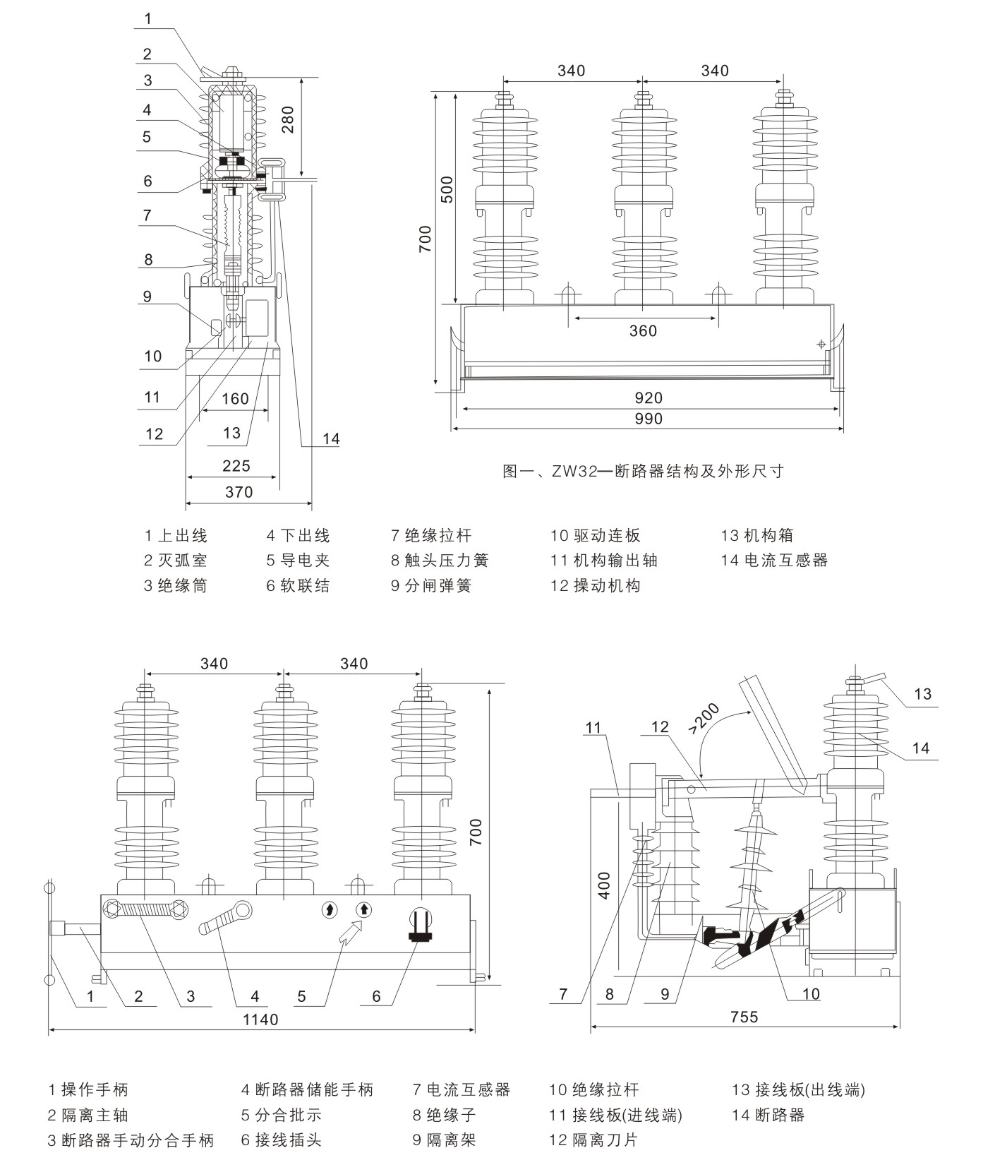 ZW32-12型戶外真空斷路器(以下簡稱斷路器)為額定電壓12kV,三相交流50Hz的戶外配電設(shè)備。主要用于開斷、關(guān)合電力系統(tǒng)中的負荷電流、過載電流及短路電流。適用于變電站及工礦企業(yè)配電系統(tǒng)中作保護和控制之用,及農(nóng)村電網(wǎng)頻繁操作的場所。 本斷路器具有體積小、重量輕、防凝露、免維護等特點,能適應(yīng)較惡劣的氣候條件和污穢環(huán)境。