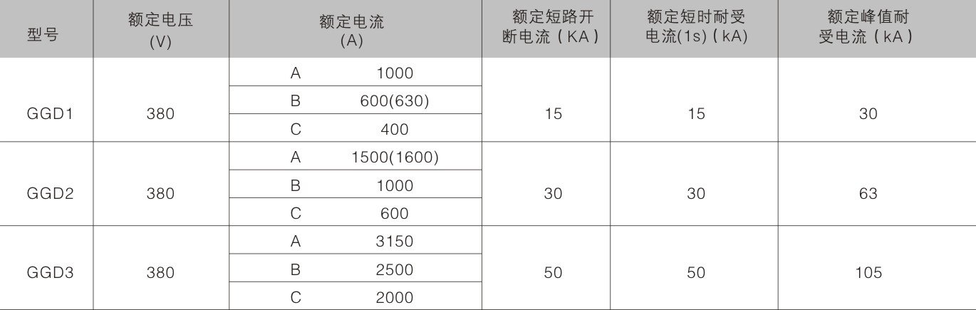 GGD型交流低壓配電柜適用于發(fā)電廠、變電站、廠礦企業(yè)等電力用戶的交流50Hz,額定工作電壓380V,額定工作電流至3150A的配電系統(tǒng),作為動(dòng)力、照明及配電設(shè)備的電能轉(zhuǎn)換、分配與控制之用。