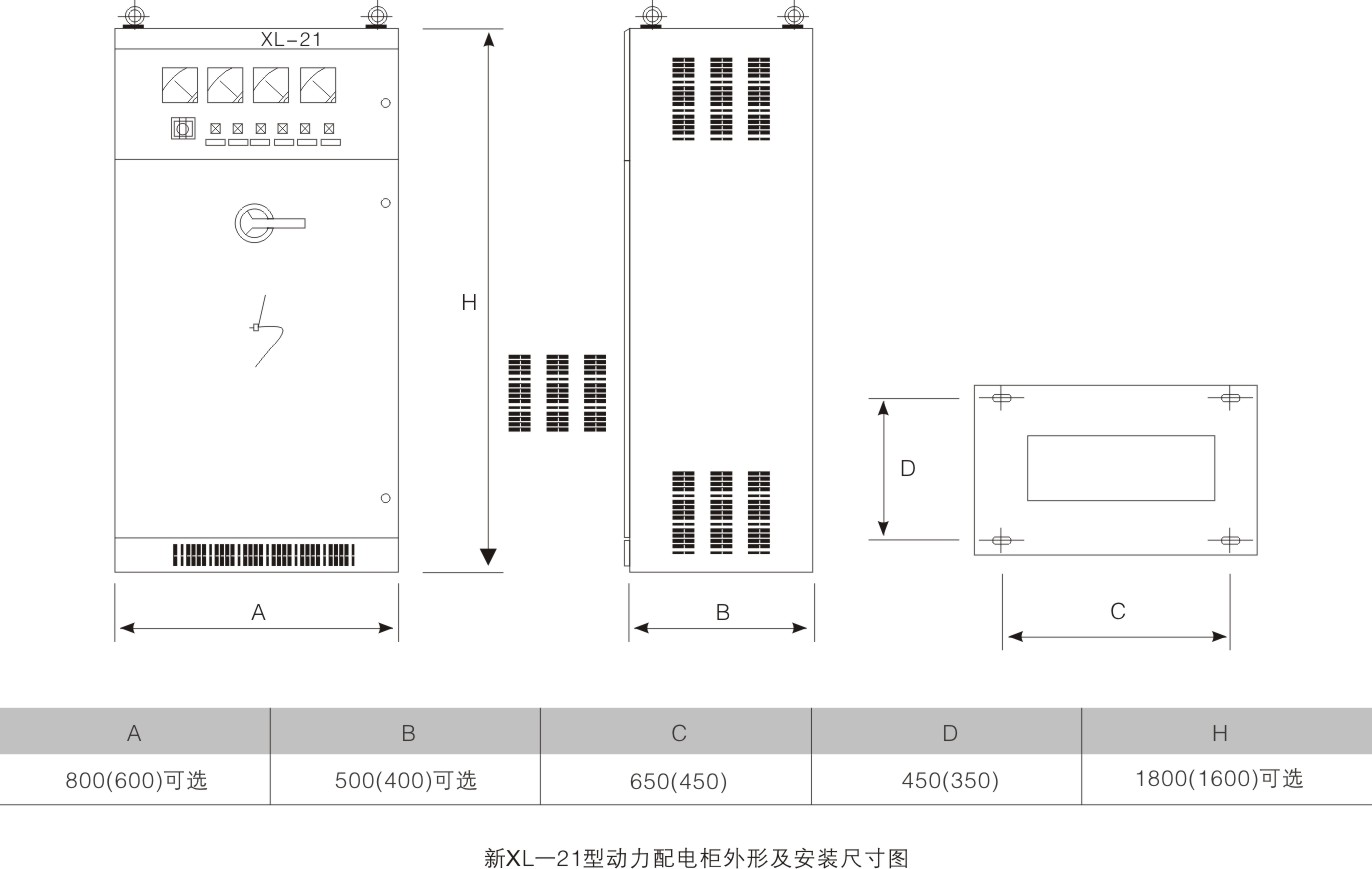 新型XL-21動力箱廣泛用于發(fā)電廠及工礦企業(yè)中,在三相交流500V以下三相三線、三相四線、三相五線等配電系統(tǒng)中作動力或照明配電之用,系戶內(nèi)靠墻安裝,屏前操作,屏前檢修;箱體為全封閉結(jié)構(gòu),由C型材或8MF型材拼裝而成。箱內(nèi)采用新型旋轉(zhuǎn)式負(fù)荷隔離開關(guān),可帶負(fù)荷操作,正面門上裝有電壓、電流指示儀表以及信號燈、按鈕、轉(zhuǎn)換開關(guān)等主令元件。本配電箱內(nèi)采用自行設(shè)計的新型組件,結(jié)構(gòu)緊湊,造型美觀大方,維護方便,多種接線方案可供用戶選擇,是替代老型XL-21動力箱的理想產(chǎn)品。